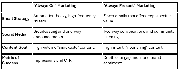 The goal isn’t to be always on. The goal is to be always present, which means when you show up in an inbox or on a feed, your audience will actually stop to read. You’re not just adding clutter, you’re adding value.